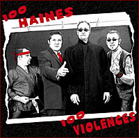 Ne nous y trompons pas, PUNCH CHAOS n’est pas qu’un clone anachronique de feu cette vitrine française, mais un groupe sincère, fidèle à une démarche qui doit autant ses racines à Taï Luc qu’à Roger Miret ou Ian MacKaye, revendications en avant, dénonciations de la société en étendard sur fond de pur rock authentique. En témoigne le titre qui donne son nom à l’album, « 100 haines, 100 violences », véritable pamphlet contre une vie terne et sans espoir, le lot de trop nombreux jeunes aujourd’hui. L’album donne aussi lieu à de plus légères réjouissances, tel « La Pêche A La Cuite », apologie des vertus de la pêche à la ligne, version canettes et panier de pique nique destroy. « Shaolin Bop » nous remémore aux meilleures heures des faux frères RAMONES, hommage vibrant à « Cretin Hop » ou autre « Blitzkrieg Bop », « Je Suis Venu Te Dire », révérence au maître GAINSBOURG, nous prouve s’il le fallait qu’il fut l’un des premiers punk de l’histoire du rock français. « Kamikaze De La Route » sent la blague juvénile de vieux ados sur le retour, jeunesse rebelle jamais vraiment éteinte. « Amours De Jeunesse », fausse ballade romantique, est symptomatique de l’esprit réaliste des gaillards. Pas de romance à trois sous pour séduire le public, mais une histoire crue, sans doute vécue, instantané classique d’une vie rappelant un peu l’esprit des DOGS. « En 80 », comptine nostalgique d’un temps ou presque tout était permis, est un titre beaucoup plus crédible et moins surfait que le pauvre « 1980 » de Pascal Obistro. On se finit au bar avec « Combo Chaos », présentation du combo en question, conclusion sympathique d’un album sans faille mis en scène par de vrais orfèvres du genre.