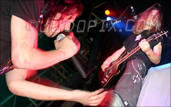 Il semblerait que ce soit avec la sortie de leur cinquième album studio, Fall, que les Suisses de SHAKRA vont enfin connaître une notoriété pourtant bien méritée. En effet, nombreux sont ceux qui découvrent ce groupe de Hard Rock avec la Tournée SHAKRA-HAMMERFALL-STRATOVARIUS. Ça, il est sûr que ça les change du public de MOLLY HATCHET ! Petite discussion avant leur concert de l’Elysée Montmartre avec le charmant Thomas Muster et un Mark Fox qui économisait visiblement sa voix pour le show.