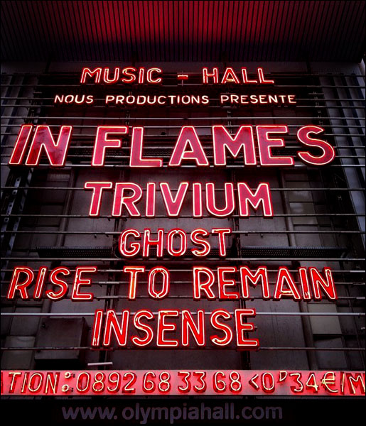 Groupes Présents au concert : INSENSE (no), RISE TO REMAIN (uk), GHOST (se), TRIVIUM (usa), IN FLAMES (se)