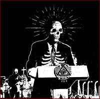 Elle regorge de revendications… et de messages. Ma bonté suprême m’autorise un détour sur la cover. Cimetière, barbelés, soldat, homme politique à la tête de mort sans oublier l’œil dans le triangle, symbole maçonnique et son numéro fétiche : le 322, pas besoin d’un dessin pour comprendre que KILL THE CLIENT est un farouche opposant au système étatsunien actuel. Pour la petite histoire, le 322 renvoi en réalité au 322ème jour d’une année non-bissextile, c’est-à-dire au 18 novembre (1830), anniversaire de la mort d’Adam Weishaupt, à l’origine des Illuminatis et de tout ce qui en découle (cf. Book review : Anges & Démons). Ce nombre est également présent sur le logo des « Skull And Bones » qui compte parmi ses rangs les clans Bush, Harriman et Kerry. Inutile de préciser que derrière leur concept marginal, les bucherons texans font beaucoup, beaucoup de bruit ! Le plus possible, pour se faire entendre j’imagine. Ça n’a pas manqué ! Lancé comme un bulldozer, le quintette explose tout sur son passage à gros coups de Grind (base principale) marqué d’effluves Death. Comme toujours dans le Grind, plus c’est court, mieux c’est. Alors ne vous réjouissez pas trop à la vue des dix-huit pistes offertes car la durée du full-lenght n’en sera pas plus longue. Rome ne s’est peut-être pas faite en un jour, mais elle pourrait bien être dévastée en vingt-trois minutes. Juste le temps qu’il faut à KILL THE CLIENT pour nous enchaîner dans un local désaffecté et nous punir sévèrement à grands renforts de riffs tranchants, imprévisibles, détonants, de blasts ultra-marqués qui vous feront perdre la raison et d’une multitude de variations rythmiques… incontrôlables. Dans quel état d’esprit peut-on préparer pareille boucherie ? C’est dans une violence des plus indescriptibles que le temps passe. Et pas moyen de voir un rayon de soleil, il fait nuit noire. Le mixage est un vrai travail de porc et devient contre son gré un des points forts de Cleptocracy. Tant qu’a faire, sonnons le plus mal possible, cherchons à produire des sonorités crasseuses et négligées, notre travail n’en sera que sublimé. L’effet de style frôle la perfection. Je pense que j’oserais à peine donner un vulgaire cinq sur dix avec une production limpide. Ici, cette dernière est bâclée et donne tout son charme à la rondelle. L’inconscience et la brutalité des musiciens fait le reste.