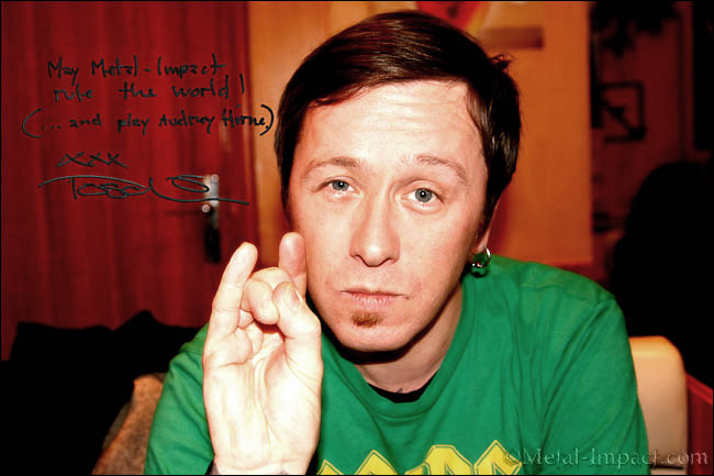 Toschie. Oui, c’est vrai en fait, Audrey Horne, ce n’est pas de grands riffs de guitare ou autre, c’est une écriture. Tu sais, un groupe est d’autant meilleur que ses chansons sont bonnes. A plusieurs reprises, tu as écouté une chanson d’un groupe et tu t’es dit « waow, c’est une bonne chanson ! » et tu as acheté l’album, tu es rentré chez toi, et après avoir écouté une ou deux fois l’album, tu t’es rendu compte que celui-ci n’est constitué que de répétitions de cette chanson. Nous voulons jouer de tout, de l’ambiance comme la dernière chanson « Godspeed », qui a une atmosphère très paisible, et vous avez des morceaux comme « Charon » plus progressifs et tac tac tac, « Sail Away » est plus une balade ou « Blaze of ashes » qui est plus old school…tu vois….En tant que musiciens, nous voulons exprimer différentes parties de nous-mêmes, parce que parfois on écrit des chansons qui ne ressemblent en rien à ce que l’on fait d’habitude, ça ressemble au « Crazy Train » d’ Ozzy Osbourne, on s’en fout, on finit la chanson et on l’enregistre parce que quand on l’aura faite, ça ressemblera à une de nos propres chansons de toute façon tant qu’on la fait honnêtement.