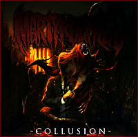 Collusion s’ouvre avec une intro du nom d’« Enigma » qui consiste en quelques montées-descentes électroniques sur lesquelles se greffent des guitares syncopées. L’occasion pour moi de dire à MAKE ME A DONUT que s’ils veulent une putain d’ouverture pour leur prochain brulot, ils feraient mieux de demander conseil à ces rosbifs plutôt qu’à SHAKE IT MASCHINE. En dépit de cet aspect moderne baveux un peu dégueulasse, voilà un avant-propos qui a de la gueule. Et ce n’est rien à côté de « Maelstrom », qui comme son nom l’indique, est un tourbillon de violence à l’état brut, créé de toutes pièces à partir d’une riffothèque qui emprunte sans vergogne au Death technique outre-Atlantique (THE LAST FELONY) ou à celui d’outre-manche (TRIGGER THE BLOODSHED). La vénération va si loin qu’on surprend même MARTYR DEFILED à faire le remake du « What The Fuck ? » qui brise l’élan du mythique « Lie To My Face » de CARNIFEX sur le final de la massive « An Act Of Sedition ». Il y a comme ça, quelques œillades pas très discrètes à des références stylistiques. Doit-on en déduire que ce Collusion n’a pas d’âme ? Que nenni. Il semble évident que ces garçons s’inspirent, se réfèrent mais jamais ne plagient. Ils proposent une vision très personnelle du Brutal Death, étayée par une écriture fluide qui offre un temps de parole très conséquent au frontman, lequel joue sur des contrastes entre des vocaux caverneux et d’autres plus criards, teintés de Black. Pour vite conclure cette parenthèse sur les chants, Jason Evans d’INGESTED se pointe brièvement sur l’éponyme, ce qui nous fait une belle jambe. Dans l’ensemble, ce disque se découvre comme très compact et difficile à déglutir. Les BPM défilent à la vitesse de la lumière sauf que leur rendu est vraiment trop synthétique par moment. Regrettable. De plus, MARTYR DEFILED à l’air déterminé à détruire le système nerveux de son auditeur, ce qui métamorphose son Brutal Death sympa au début comme une musique beaucoup plus sournoise et malintentionnée. Cette granulosité n’est pas des plus plaisantes mais heureusement, nos amis réalisent un coup de maître en plein milieu de leur œuvre avec un triptyque sacrément bien foutu. Tout commence avec « I : Zealot » avec tempos catchys et riffs caoutchouc qui précède « II : Excommunicate », probablement la création la mieux achevée dans son esprit Death progressif façon THE CONTORTIONIST pour aboutir à « III : Collusion » et son final mélodique assez épique.