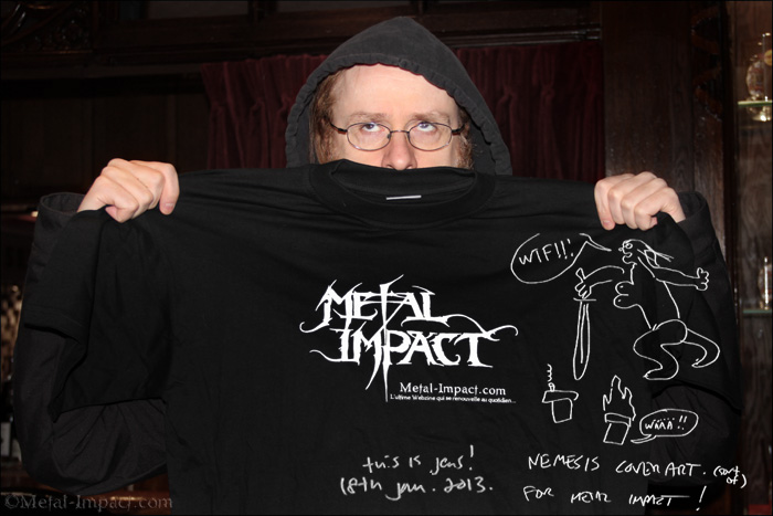 Jens. Non en fait c’est un mot court qui génère une émotion quand on le dit, c’était l’idée de base de travail que nous avions en tête. C’est très difficile de trouver un nom pour un album de toute façon, d’autant plus quand tu as autant d’années de carrière que nous. Ce nom te renvoie un sentiment froid, sombre et inquiétant. Je pense que c’est important qu’il y ait une identification entre la musique et la pochette car parfois le livret peut être neutre et dans ce cas tu peux te dire que la musique l’est aussi. Alors quand quelqu’un achète ce CD et voit le titre Nemesis et le visuel de la pochette avec ce dessin effrayant avec cette ville en feu et cet ange vengeur, il comprend ce qu’il peut y avoir musicalement derrière. Je ne pense pas que l’on ait fait un album à thème mais avec ce nom le ton est donné dès le départ. Si nous l’avions nommé autrement, la personne en achetant Nemesis n’aurait pas eu le même sentiment en l’écoutant. L’illustration peut te mettre dans un certain état d’esprit qui prédétermine ta manière d’écouter les chansons. Nous avons fait plusieurs morceaux puis ensuite nous avons décidé d’appeler cette collection de titres Nemesis. Après nous avons continué à écrire et peut-être que nous avons été influencés par ce titre nous aussi ce qui a eu pour conséquences de créer un climat un peu plus sombre sur certaines de nos compositions !
