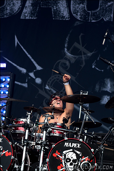 Franky Costanza. Alors, je dirais que oui, les objectifs fixés ont été atteints, parce que par exemple, un jour comme aujourd’hui, c’est un rêve de gosse qui se réalise ! Partager la même affiche qu’IRON MAIDEN, SLAYER, CHILDREN OF BODOM, KORN… Si on m’avait dit que ça nous arriverait il y’a dix ans, j’aurais répondu au gars en face d’arrêter se foutre de moi (rires) ! Alors bon, aujourd’hui ça nous arrive, ça arrive à DAGOBA, même si on est tout petits sur l’affiche, on y est quand même. Pareil pour des festivals comme le Hellfest, ou d’autres événements exceptionnels qui nous sont arrivés. Donc oui, il y’a eu ce petit bonhomme de chemin dont tu parlais qui a été accompli, avec de très nombreux moments de plaisir. Ça commence à nous faire pas mal de supers souvenirs, les enregistrements, les concerts... On a pas mal tourné à l’étranger (ndlr : à noter un passage en 2011 en Russie !), aux Etats-Unis et en Europe. Par rapport à l’album éponyme, c’est sur qu’on a évolué, même musicalement ! Notre premier opus était très brut, très minimaliste. Maintenant, on essaye au mieux de se renouveler, d’apporter plus d’orchestrations, plus de mélodies. Tout ça, on ne l’avait pas au début.