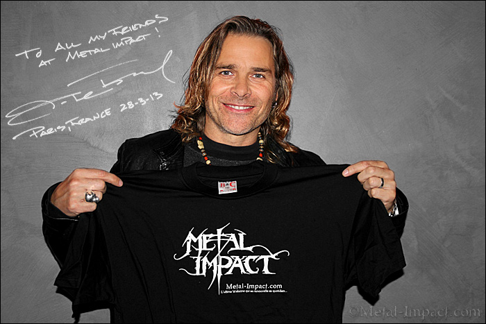 Mike. Oui, mais il faut que tu comprennes quelque chose, tu sais qu’ils sont tes idoles et tu les admires, mais à la seconde où tu les accompagnes en tournée tu rivalises avec eux, tu es en compétition avec eux, c’est un duel en quelque sorte. Il faut savoir qu’ils doivent vendre des albums et conquérir le cœur des fans eux aussi car rien n’est jamais acquis. Alors ça se transforme en un jeu un peu diffèrent qui est basé sur la concurrence. Mais la plus grande récompense c’est quand tes héros te respectent, qu’ils te montrent ou te font sentir que tu es leur égal. Un des plus beau souvenir pour moi c’est lorsque j’étais en tournée avec AEROSMITH et que Steven Tyler, en marchant le long d’un couloir, a commencé à fredonner mes chansons. Cela signifie pour moi, qu’il me respecte et qu’il apprécie ce que je fais et plus tard nous sommes devenus des amis ! C’est comme lorsque Angus Young s’est assis à coté de moi et m’a parlé très simplement en me disant : « crois juste en qui tu es et ne te laisses jamais influencer par personne ». Ce furent des mots clefs qui, aujourd’hui encore, résonnent en moi.