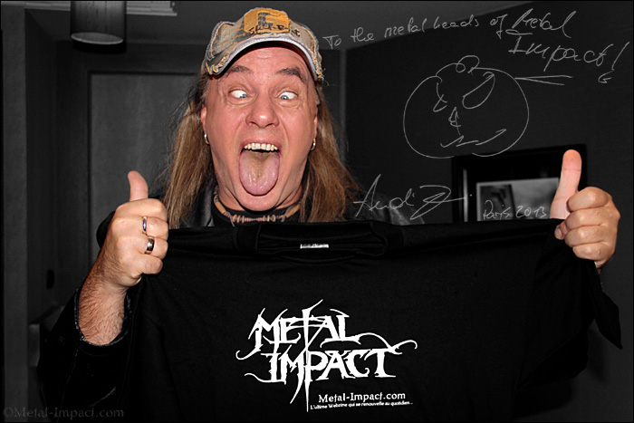 Andi. Quand j'ai vu la salle de spectacle, pour la première fois, c'était au moment du soundscheck, j'ai vu ce théâtre vide et je me suis dit : "Wow. Ca ressemble à un temple sacré, bien trop propre pour jouer du Heavy Metal !". Car faisant parti de ces gars qui ont toujours joués et jouerons pour toujours à l'Elysée Montmartre, qui était un endroit dément au passage, l'Olympia ressemblait à un lieu où tu dois bien jouer pour y accéder. Voilà à quoi ça ressemblait et j'ai réalisé que c'était un honneur d'y jouer mais je n'étais pas sûr que les gens accepteraient cette salle car elle est si belle, si prestigieuse mais quand nous avons donné notre show tout a été cool. Il y avait tellement de métalleux pour un concert de Metal dans un cadre si unique que c'était vraiment un énorme plaisir ainsi qu'un grand honneur que d'y jouer, indubitablement.