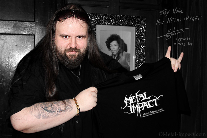 Si le nom d’EPYSODE ne vous évoque rien, ne paniquez pas ! C’est tout simplement que la formation demeure pour l’instant relativement inconnu dans nos contrées ! Et pour cause, le combo n’existe que depuis peu et n’a pour le moment que deux albums à son actif ; Obsessions (2011) et leur dernier méfait Fantasmagoria sorti en 2013. Formé en 2010, le gang nous vient tout droit de Belgique, le plat pays où il fait bon vivre entre les bières et frites. Pourtant en dehors du coté touristique, il existe une scène metallique particulièrement active à l’instar du PPM Fest qui a lieu tous les ans au mois d’avril. Née de l’imagination fertile de Samuel Arkan maître de cérémonie incontesté d’EPYSODE, le groupe belge -depuis sa signature chez AFM Records- est particulièrement actif. Il faut dire que notre ami en quelques années a su imposer un univers unique tout droit sorti de son imagination très féconde. Samuel Arkan guitariste et compositeur gère tout de A à Z et assure à lui seul un travail titanesque. EPYSODE est avant tout un projet qui s’inscrit tout droit dans la ligné de formation comme AEYRON ou d’AVANTASIA et n’a pour l’instant donné que très peu de concerts. Si il donne l’impression de ne sortir de nulle part, notre ami belge à déjà pourtant derrière lui un sérieux bagage metallique. Sa carrière a commencé très tôt et le bougre a sévis au sein de gang comme BEAUTIFUL SIN formé par Uli Kusch (Ex HELLOWEEN) ou encore VIRUS IV pour n’en citer que quelques-uns. EPYSODE nous délivre un Metal progressif très sombre basé sur des concepts tout droit issus de l’esprit machiavélique et torturé de Samuel Arkan. Si Obsessions était basé sur une enquête policière alambiquée nous invitant à découvrir un monde des plus sordide, la saga continue de plus belle avec Fantasmagoria. On a là affaire une fois de plus à un thriller glacial qui met en scène des personnages plus pervers les uns que les autres, de quoi terrifier plus d’un metalleux à la recherche d’émotions fortes. Une chose est certaine, EPYSODE développe des intrigues d’une originalité peu commune dans le monde du Metal. Une autre des spécificités de notre ami est de s’entourer de prestigieux invités pour apporter une nouvelle dimension à ses personnages. Le bougre n’a pas hésité à faire appel à cinq chanteurs différents comme Thomas S Englud (EVERGREY), Henning Basse (Ex METALLIUM) ou encore Matt Marinelli (BOREALIS) pour n’en citer que quelques-uns. La section rythmique basse batterie étant assuré quant à elle par un duo de choc Mike Lepond (SYMPHONY X) et Léo Margarit (PAIN OF SALVATION) qui viennent compléter ce line-up de rêve. C’est donc sans aucune hésitation que votre serviteur s’est rendu au Hard Rock Café pour converser avec Samuel Arkan, la tête pensante d’EPYSODE, afin d’en savoir un peu plus sur ce projet surprenant. Rencontre avec un garçon sympathique heureux d’être dans la capitale pour nous faire découvrir le nouvel épisode d’une longue série à n’en pas douter...