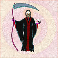 C'est la basse, rageuse, qui soutient tout ce fragile équilibre. Sergii Sliusar a pour mission délicate de donner toute la profondeur au dessin que ses deux acolytes peignent. Un peu comme si il devait donner une troisième dimension à une fresque amérindienne. Et putain, il y arrive. La basse, dans STONED JESUS, c'est un peu le lien entre leur univers et le nôtre. Un peu comme le vieux conteur au coin du feu, qui tire la légitimité de ses histoires de sa longue barbe et de sa voix profonde."